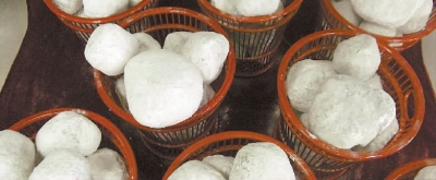 大球泥生來便與眾不同,它不在地層表面,而是深藏在溆浦、懷化和洪江交界之處雪峰山的巖石層下,這是一種古代火山爆發(fā)出的花崗巖體風化形成的高嶺土原生礦,礦土皆是成窩狀分布,色彩耀眼雪白,狀如雞鴨孵蛋,直徑一般在10~20厘米,故稱大球泥。