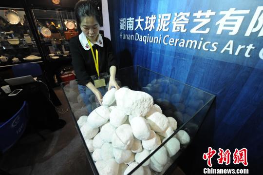 中新網長沙5月16日電(記者 鄧霞)在16日開幕的首屆中國(長沙)國際礦物寶石博覽會上,一種非寶石、非金屬的球狀白色礦土吸引了眾多參觀者的目光。這種名為大球泥的礦土看似不起眼,卻是1974年湖南醴陵為毛澤東制作專用瓷器(“毛瓷”)的主要原料,因礦源稀缺有“泥黃金”之稱。