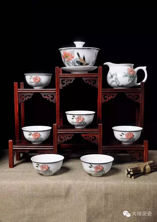 《清香》茶具,畫面簡潔唯美,強調藝術美學,希望這套茶具能讓收藏者享受到人與自然環境間的平衡。當你端起茶杯時,仿佛能感受到春天的美麗與魅力,撲面而來的茶香也瞬間化為花香,讓人陶醉在這花的海洋里。這樣一套色澤鮮艷、紋理清晰、精致美觀的茶具,無疑是大球泥瓷茶具中的經典創作。