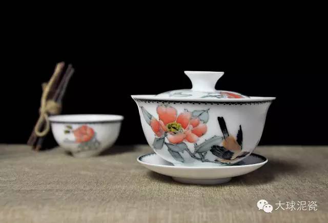 泡茶是一門藝術,茶具也頗講究。一盞鮮醇清香的茶水配上雅致精美的大球泥瓷茶具,更能增添飲茶的情趣。大球泥瓷《清香》茶具由省級工藝美術大師鄧劍波老師創作,剔透晶瑩的瓷質與芳香淡雅的花朵心心相映,怡然成趣。再加上蜜蜂與雀鳥的生動點綴,使人賞心悅目,像是走進了一番春色盎然的場景。《清香》茶具,落筆簡潔,卻偏有不動聲色之奢華;用色純凈,卻偏有一種散落空靈的凝重感。