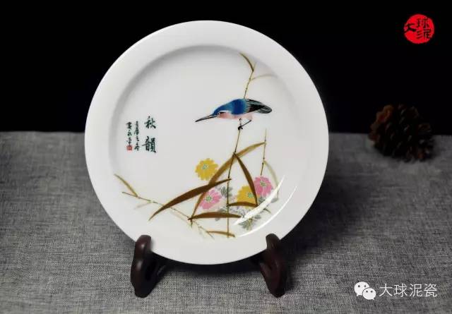 《四季》掛盤之《秋韻》作品,展現了煙波浩然的洞庭湖,一番秋色之景。而一只小巧玲瓏、色彩艷麗的翠鳥停靠在水邊的蘆葦桿上,打破了這清晨的寧靜與尷尬。工藝美術大師通過這一主題表達了自己對深秋的看法,希望突破傳統繪畫技法的束縛,能夠有新的想象力與創新。在工藝美術大師的眼中,深秋的美不是蕭條的、遜色的,而是別有一番耐人尋味的體驗。這種美,卻只留給善于發現與挖掘的有心之人。