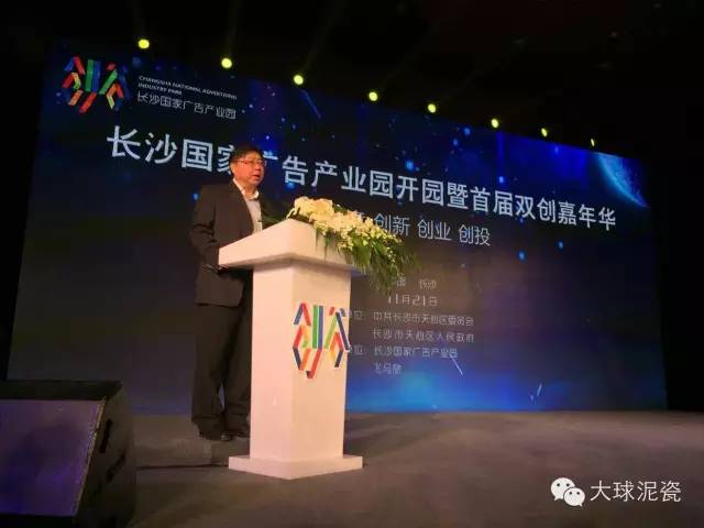 2015年11月21日,長沙國家廣告產業園開園儀式暨首屆雙創嘉年華在創谷-長沙國家廣告產業園多功能會議廳召開,湖南省人民政府副省長蔡振紅,國家工商總局廣告監督管理司司長張國華,湖南省人民政府副秘書長王光明,長沙市市委副書記徐宏源等領導出席。此外,還有各區直部門、合作媒體、優秀企業家代表到場參加,湖南大球泥瓷藝有限公司董事長滕召華應邀出席。