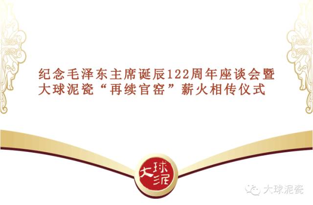 預祝湖南大球泥瓷藝有限公司“紀念毛澤東主席誕辰122周年座談會暨大球泥瓷‘再續官窯’薪火相傳儀式”取得圓滿成功。