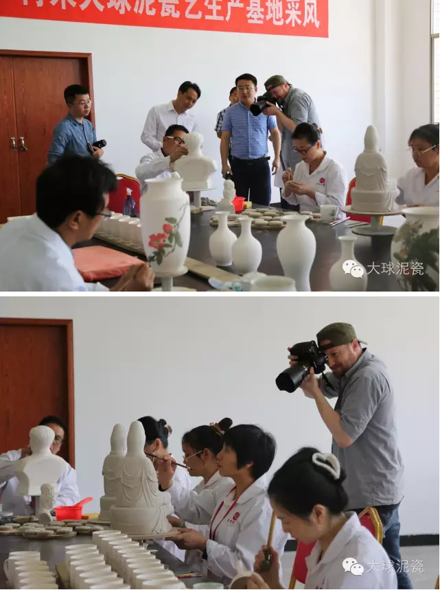 此次來大球泥瓷藝的攝影師分別為有30年拍攝經驗的法國畫家、攝影師凱樂,攝影師同時還是長沙女婿的賽德克,同行的還有湖南省政府駐法國商務總代表、法國《法中網》主編文菲女士及省市的一些相關領導。