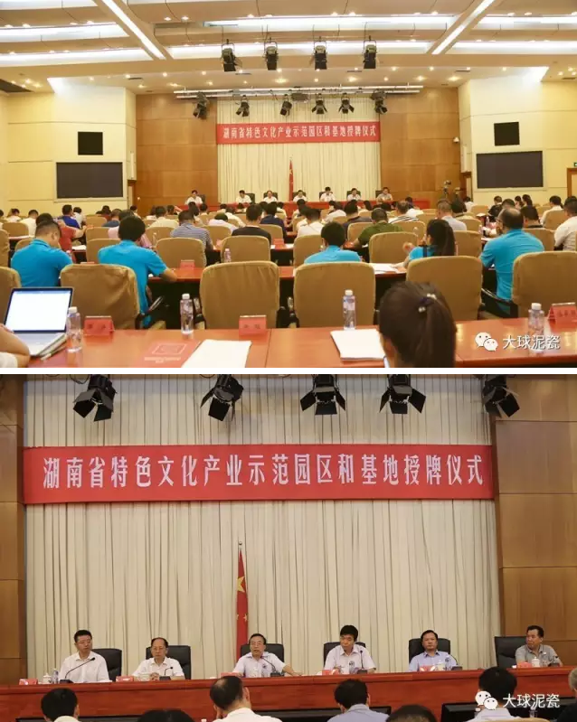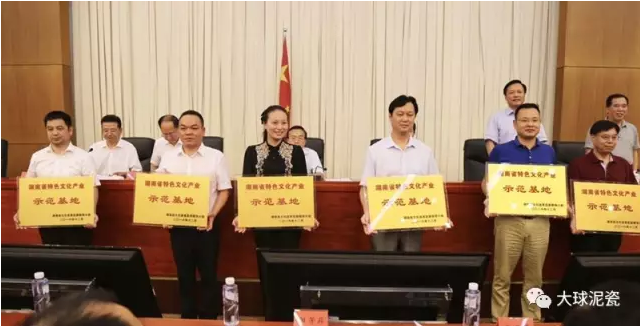 8月2日下午,湖南大球泥瓷藝有限公司在湖南省政府接受“省特色文化產業示范基地”授牌。湖南省副省長向力力,湖南省政府副秘書長彭翔,湖南省委宣傳部副部長楊金鳶,湖南省文化廳黨組書記、廳長禹新榮、湖南省財政廳黨組成員、副廳長莊大力,湖南省文化廳黨組成員、副廳長肖凌之等領導出席本次授牌儀式。相關廳局負責人以及14個市州宣傳部及文廣新局的相關領導參加了此次授牌儀式。