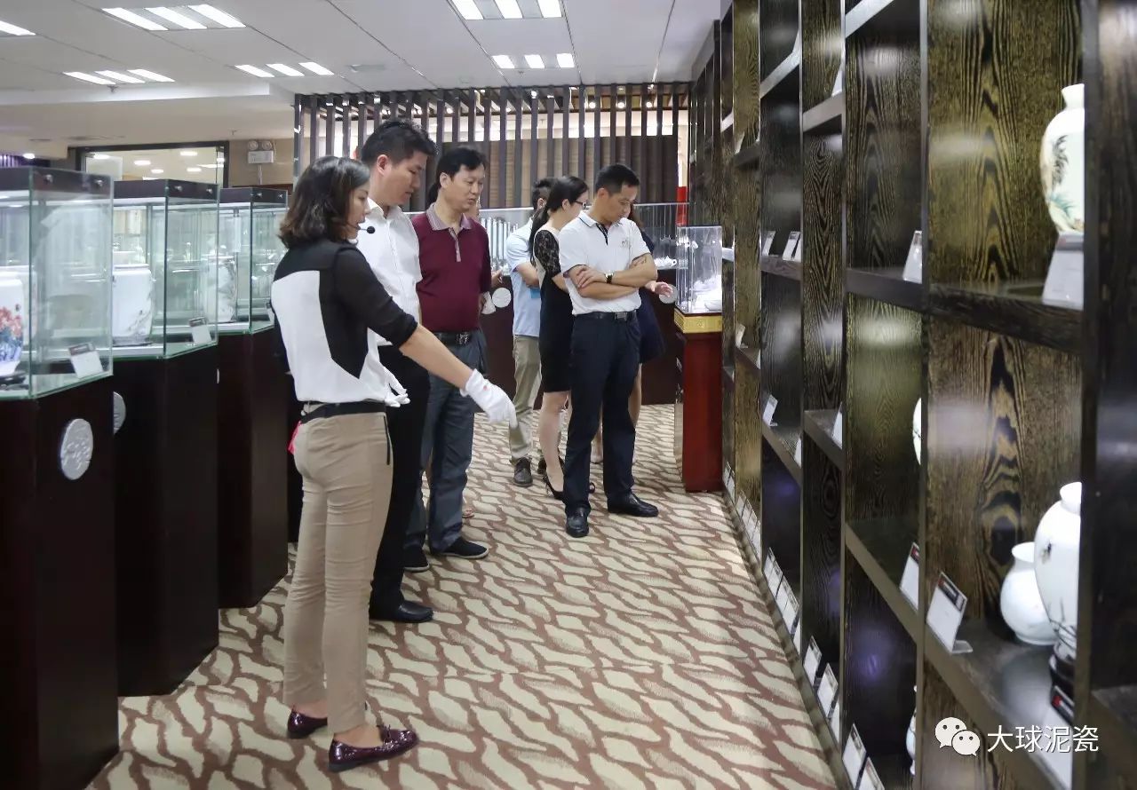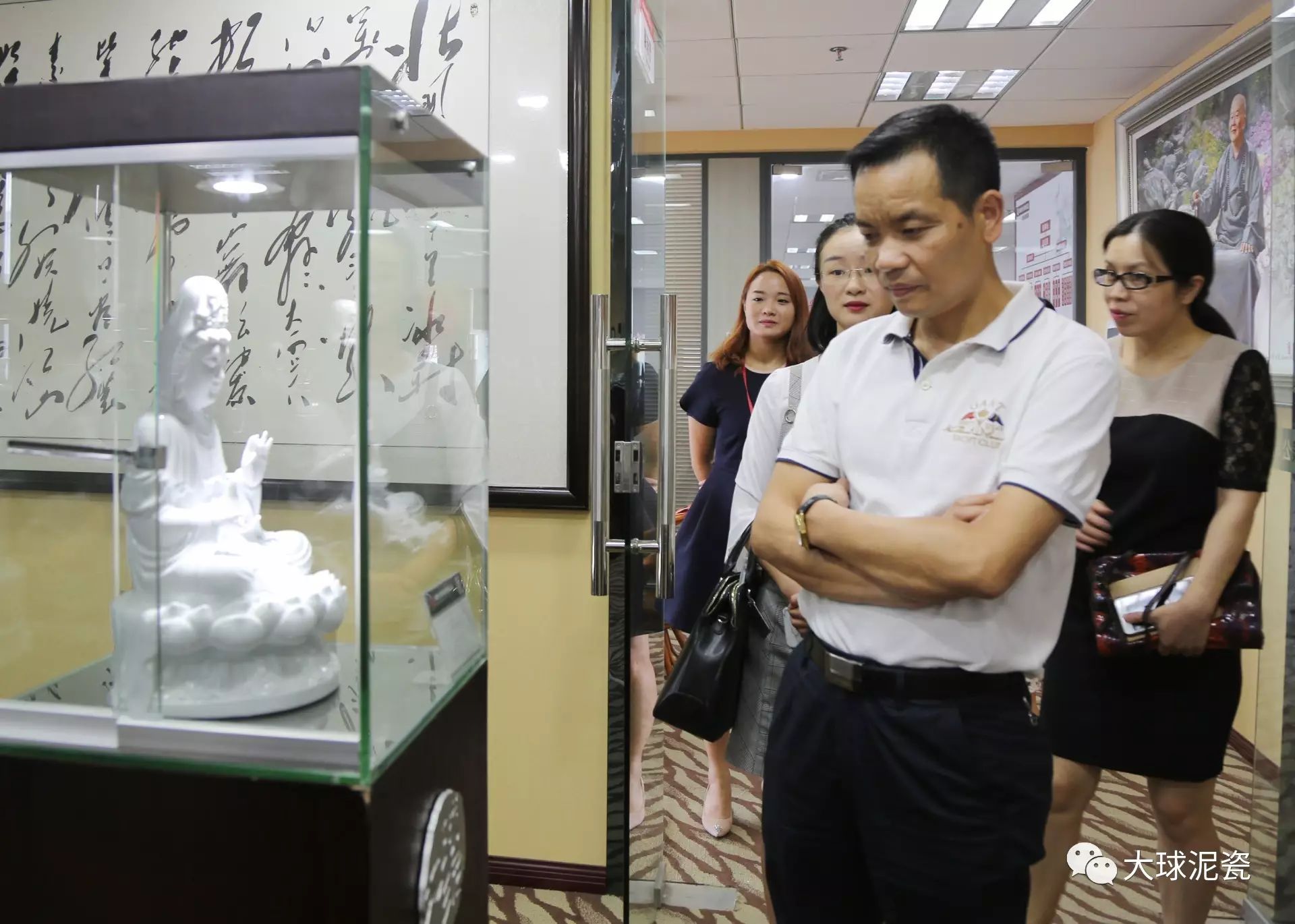 肖部長(zhǎng)一行在滕董的陪同下參觀了大球泥瓷精品展廳,仔細(xì)聽(tīng)取了工作人員對(duì)大球泥原料保護(hù)性收藏、創(chuàng)新創(chuàng)意研發(fā),以及大球泥瓷在佛教系列、紅色系列、高端藝術(shù)收藏品、生活用瓷等作品的特點(diǎn)介紹。