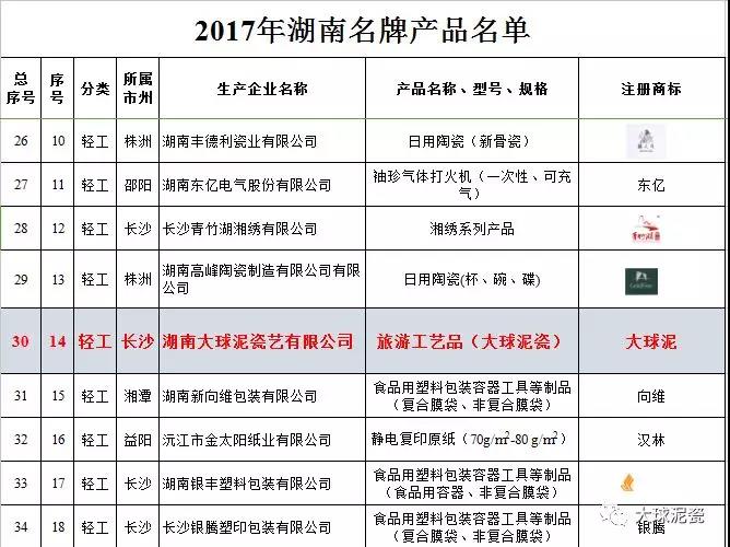 根據《湖南省名牌產品認定和保護辦法》及有關規定,經各市州質量技術監督局,省直管試點縣市食品藥品工商質量監督管理局及評審專家進行資料審查、現場評審、市場測評,省質量強省領導小組全體會議審定通過,評定“湖南大球泥瓷藝有限公司”榮獲2017年湖南名牌稱號。