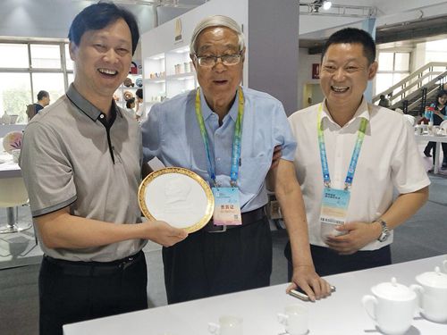 展覽會(huì)期間,中國(guó)陶瓷泰斗、清華美院教授張守智老師信步來(lái)到大球泥展廳,主動(dòng)向隨行人員介紹:我與滕總相識(shí)多年,十余年前,滕總有遠(yuǎn)見,搶救性保護(hù)收藏了世界上已經(jīng)難尋的大球泥,這種泥做出的瓷器最具藝術(shù)價(jià)值與收藏價(jià)值。如這枚毛澤東同志的浮雕瓷像就是大球泥的經(jīng)典作品。一直以來(lái)我都囑咐他對(duì)待大球泥原料要審慎使用,現(xiàn)在我依舊要囑咐滕總,一定要把大球泥用好。
