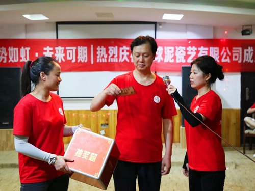 最后的合唱環節,大家齊唱司歌“遇見大球泥”。優美的旋律,精煉的歌詞,凝聚了大球泥瓷藝人的創業精神,濃縮了大球泥瓷藝的工藝智慧,大家都深深沉浸在唱響美好未來的氛圍中,合唱結束,都難以自拔。