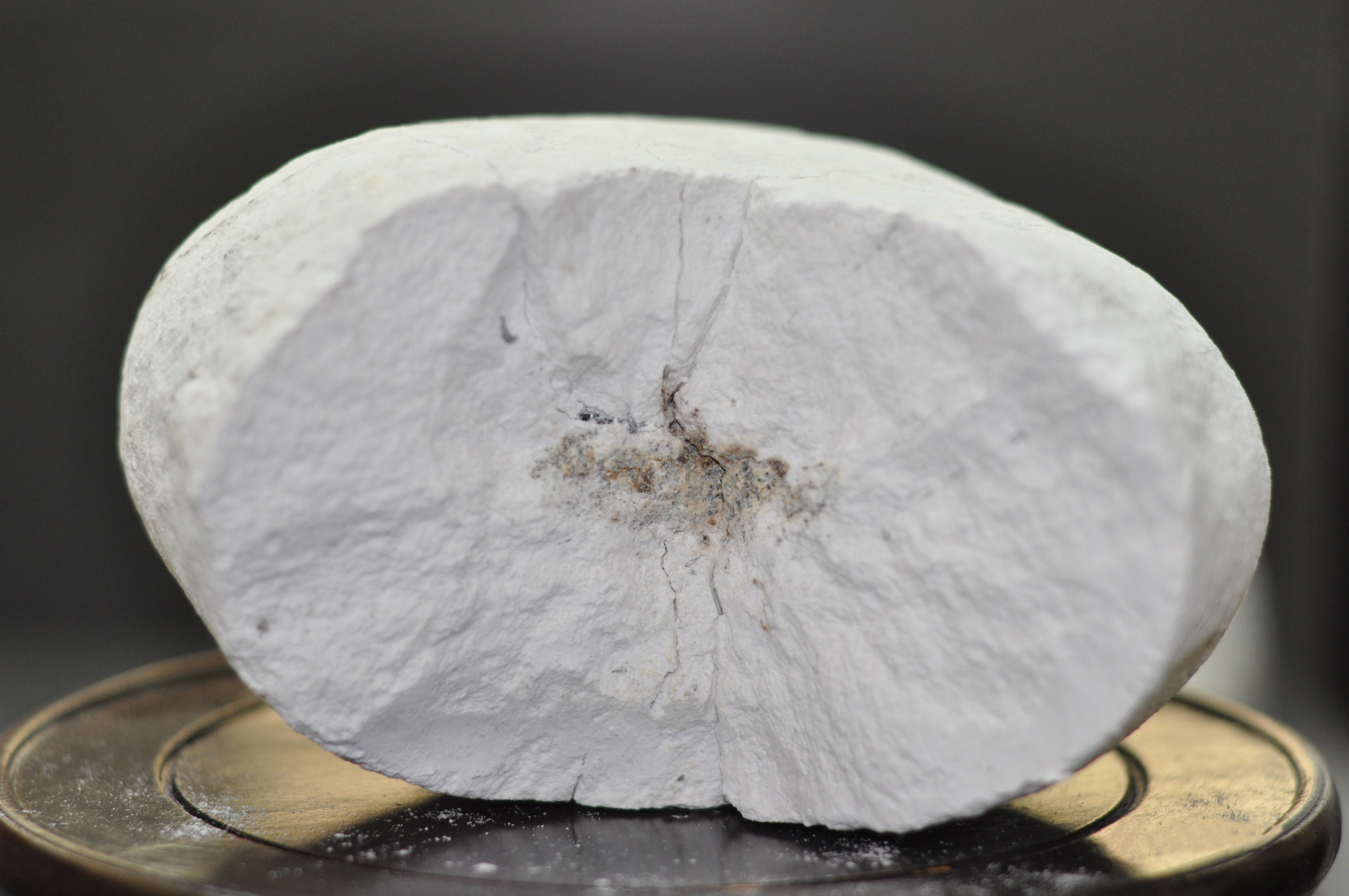 見過大球泥的人都會問,這種雪白球狀的礦物質(zhì)是天然形成的還是后天制作成球狀的?答案肯定是天然形成的。因為每一坨中間都有一個核,是氧化鐵、氧化錳、電氣石等雜質(zhì)。當(dāng)今也有人把鉀長石、鈉長石冒充大球泥這種原料,但它是堅硬的帶棱角,也不是自然球體狀。真正的大球泥是已經(jīng)風(fēng)化了的球形狀,砸開后結(jié)構(gòu)致密、成小塊狀、一捏成粉。也有人做假將瓷泥揉成球狀,人工合成的沒有分明層次,輕輕一捏就散了。要辨別是不是做假合成或是長石礦石,拿實物敲散驗證一下就知道了。