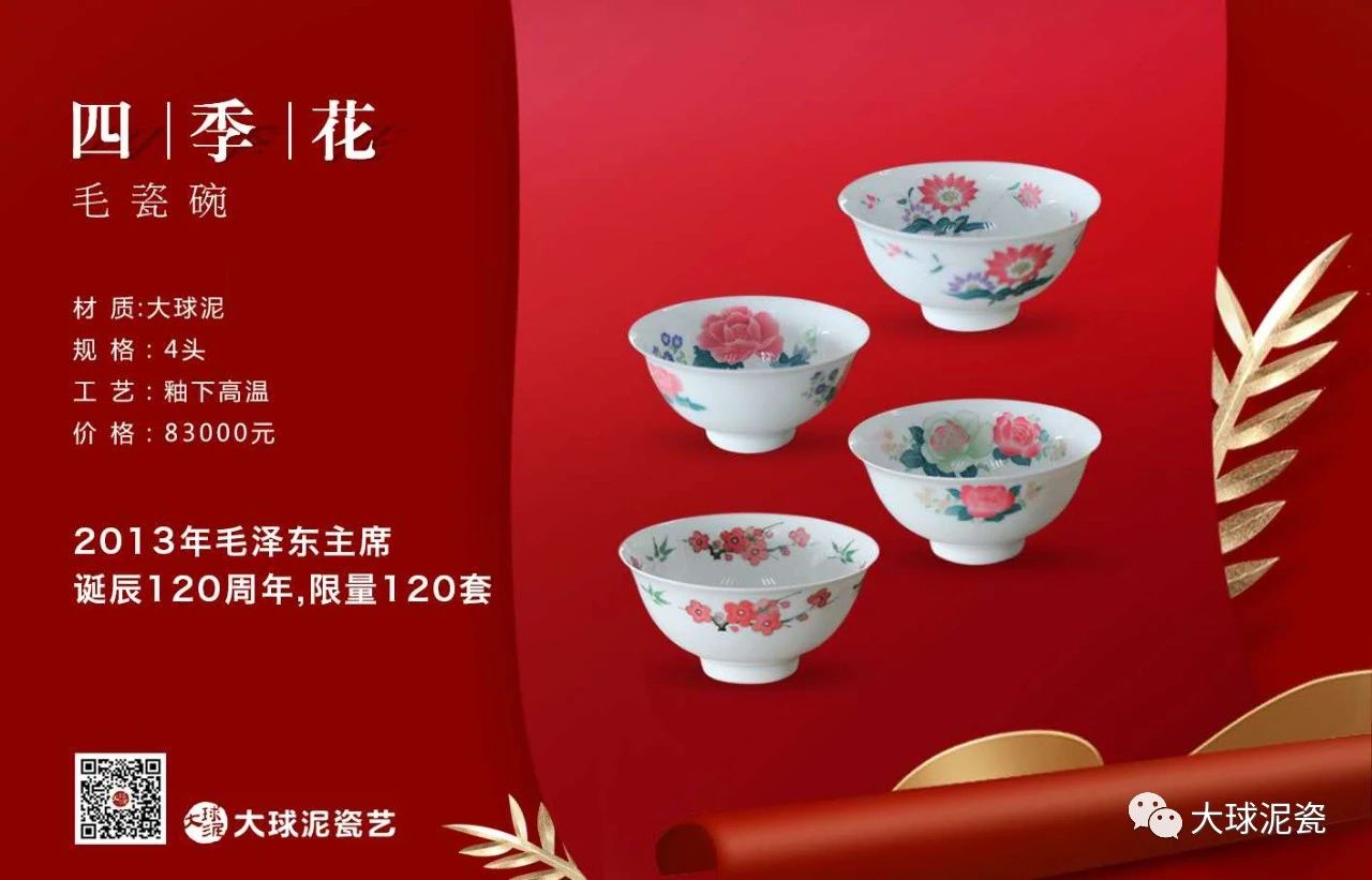 毛澤東的生活管理員吳連登回憶,主席第一次看到四季花碗時,問是哪里做的?得知出自湖南醴陵后,他輕輕贊了一句:“家鄉的瓷器真美啊”。他老人家直到最后喝的一口湯、最后吃的一口飯都是用的這種家鄉的瓷碗。