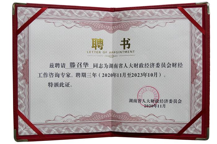 11月30日下午,湖南省人大財經工作咨詢專家庫成立大會暨第一次座談會于長沙召開,省人大常委會黨組副書記、副主任黃關春,省人大財經委主任委員張亦賢、副主任委員姚茂椿、文富恒等領導出席會議,公司董事長滕召華作為首批聘請的咨詢專家受邀出席。