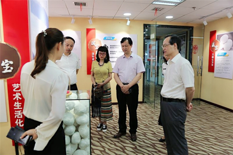姚主任一行首先參觀了大球泥瓷藝企業文化展廳,公司副總姚衛從大球泥原料研究、工藝技術、業務板塊、發展愿景等作了匯報。