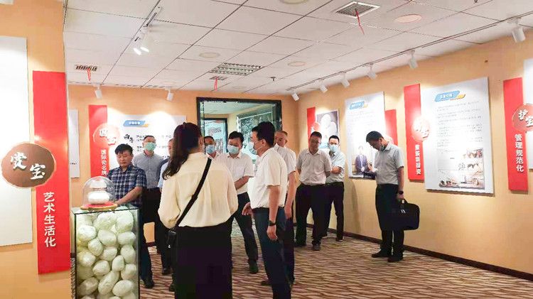 陳省長一行首先參觀了公司文化展廳,公司副總姚衛就大球泥發現、收藏、研發、運用等作了詳細匯報。陳省長對珍稀大球泥原料的已發掘、未探明談了觀點,對大球泥原料要如何推介、如何運用提出了要求;并指出必須要科學利用稀缺資源,注重可持續化發展,融入企業文化內涵,擔當社會推廣責任。