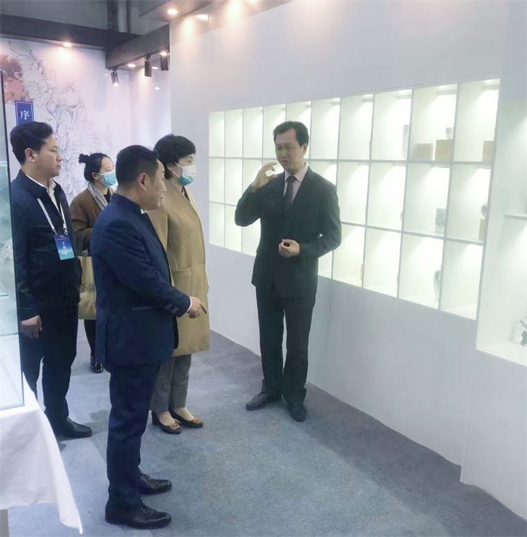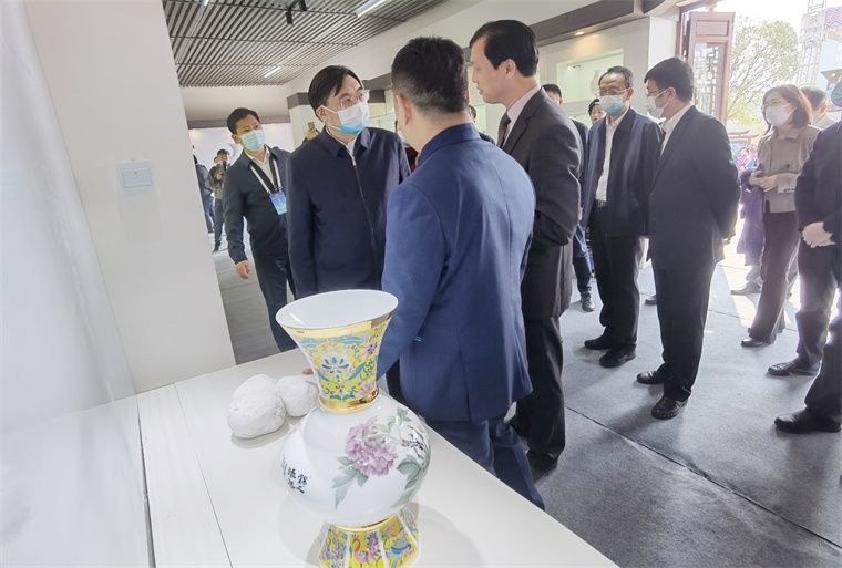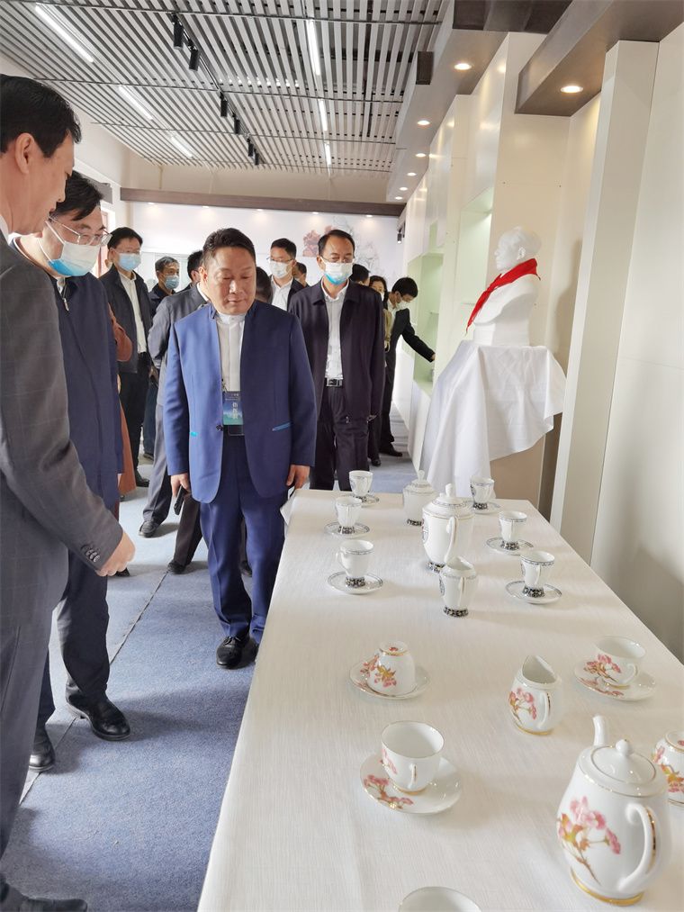 國(guó)家文化和旅游部部長(zhǎng)胡和平一行到湘瓷館巡展,董事長(zhǎng)滕召華介紹了湖南陶瓷的發(fā)展歷程及獨(dú)有特色,講解了“毛瓷”制作技術(shù)及稀缺大球泥原料,匯報(bào)了非遺傳承及融合創(chuàng)新取得成就。胡部長(zhǎng)認(rèn)為釉下五彩瓷色彩清新、畫面豐富,贊譽(yù)大球泥瓷設(shè)計(jì)新穎、白潤(rùn)通透,指示湖南陶瓷要傳承融合、守正創(chuàng)新。