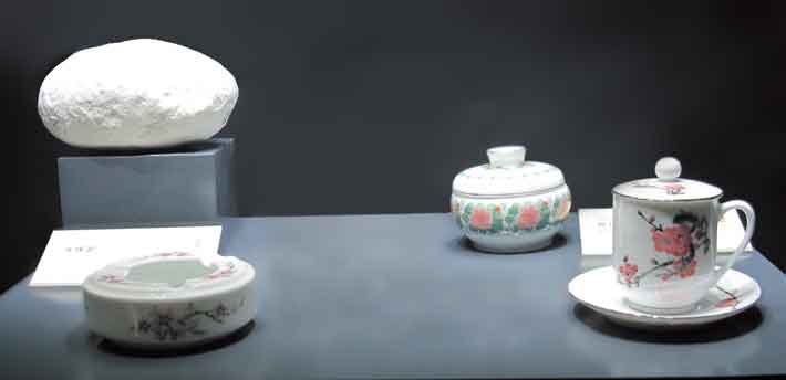 現(xiàn)在應(yīng)該把大球泥用到藝術(shù)瓷上,因?yàn)閼?yīng)用在日用瓷上太可惜。假如用來(lái)做常委杯,那可不是一點(diǎn)點(diǎn)常委杯呀,一開(kāi)會(huì)就是幾萬(wàn)只杯子,常委用的杯子和別的黨代表的杯子是一樣的,只是常委杯子要編號(hào),誰(shuí)是第一名就是一號(hào),誰(shuí)是第二名就是二號(hào)……一下子就可把僅存的大球泥用光。所以我說(shuō)現(xiàn)在的大球泥只能用在制做單件的高檔藝術(shù)品上。